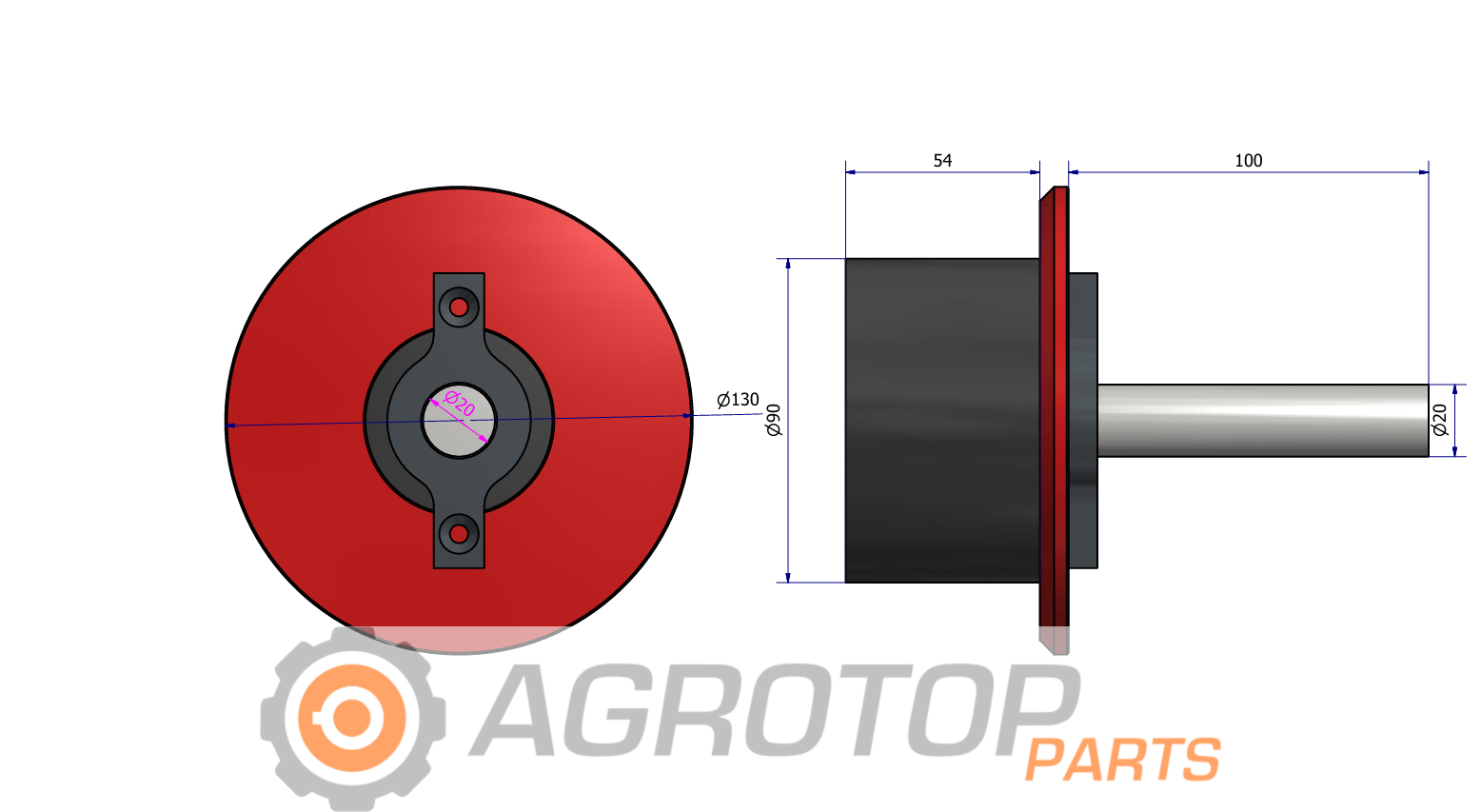 Wymiary rolki:  F127 ; Z90 ; W55 ; M20 ; C100